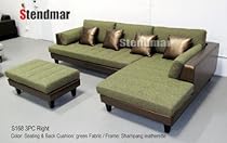 Shop 3pc Modern Sectional Sofa Set S168R. IT'S THE PERFECT ONE YOU HAVE BEEN LOOKING FOR! THE PHOTO CAN NOT EXPRESS THE MAGNIFICENT BEAUTY OF THE SOFA SET OUR SOFAS ARE WELL MADE & SHIPPED DIRECTLY FROM THE MANUFACTURER 2-tone: Seating & Back cushion in Green Fabric, Frame & accent pillow:Champagne pearlized leatherette. Solid all wood frame with high density foam seat